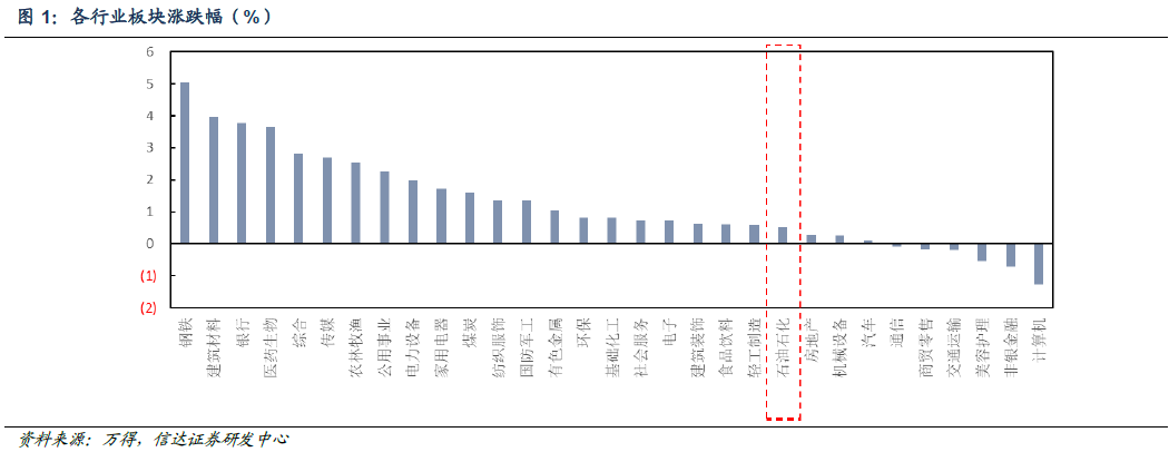 石油石化板块表现: